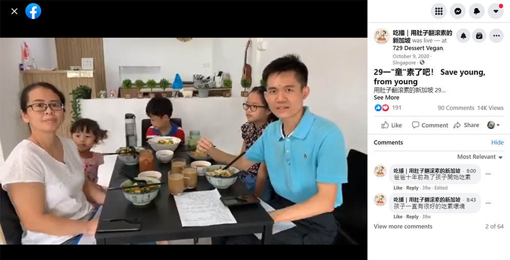 The host for this episode was Low Yee Leong and his wife, Hwang Man Wei. Together with their children, the family of five mustered their courage to share their vegetarianism journey on Singapore Children’s Day. Yee Leong also circulated the clips from this food hunt programme to his family, friends, colleagues and parents at the primary school he is teaching at. His videos have since received more than 1500 shares, and among them, some non-Chinese speaking colleagues have even requested him for a translation of the content. There were also parents who started going on a vegetarian diet upon his inspiration. The influence and impact of "Go Veggie Singapore 1.0" have far exceeded its earlier expectation.