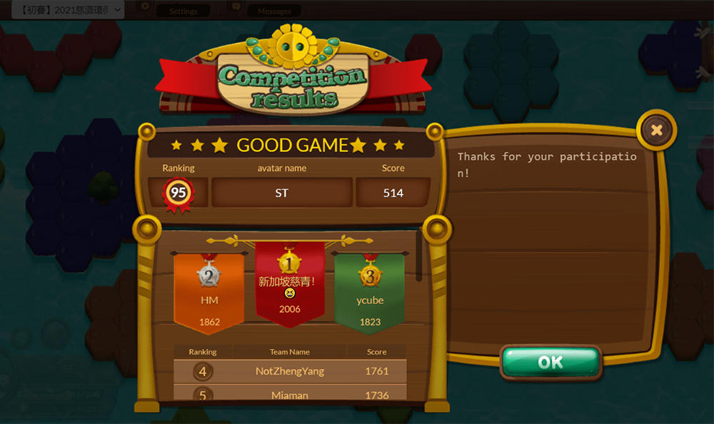 Ms Tan acknowledged that this is Tzu Chi Environment Sustainability Department's first foray into promoting sustainability through a gaming competition. She elaborated that the volunteers seldom play such games, and she attributes the smooth-sailing event to the 41 marathon-like briefing sessions conducted by the volunteers. Some of the volunteers who did not have any prior gaming experience even took extra time to practise so that they can share and promote the game more easily. Eventually, a whopping 461 people signed up, placing Singapore in third place amongst all participating regions or countries in terms of registration numbers.