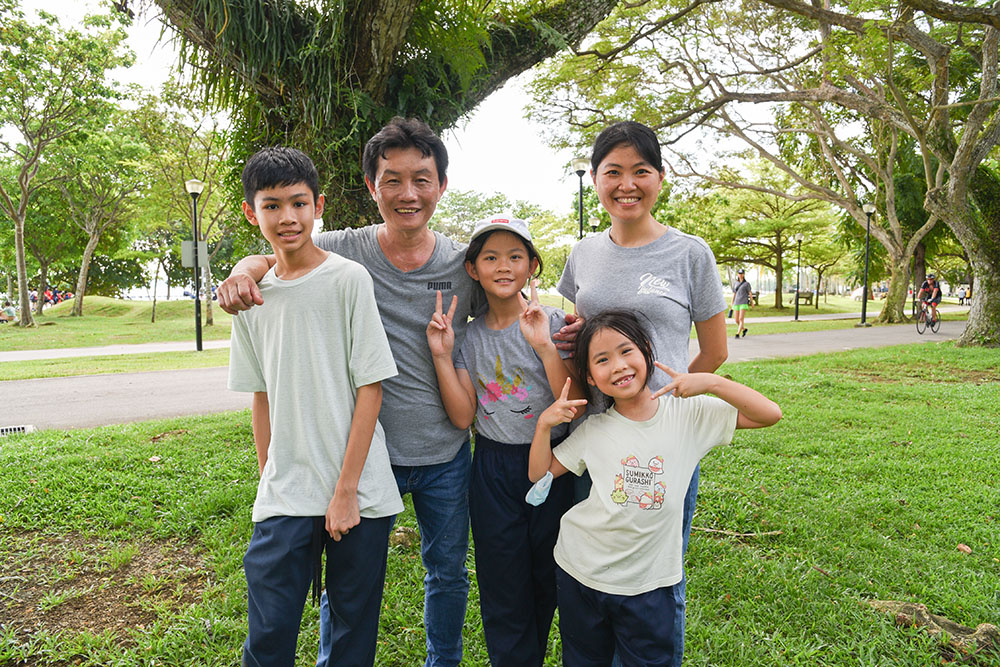 Lee Mei Shan (second from the right) and her husband brought their son Gordon Tan and her two daughters to participate in the beach clean-up. They hope to inspire their children to be environment conservationists by setting a good example for their children.