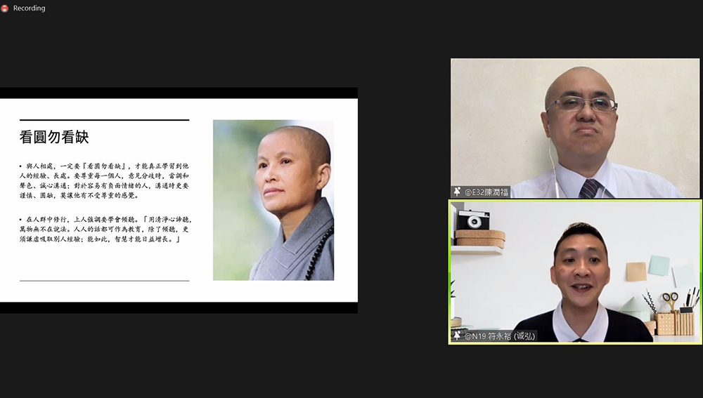 疫情发生以来,人和人之间的交流变少了,哪怕是有机会见面,也总是匆匆忙忙。南区志工洪丽环和连美儿分享在疫情下运用线上品书会,凝聚彼此感情,也发挥传法量能,有一位志工就算到菲律宾出差,依然坚持上线和大家“会面”,只因品书会已成为他的精神寄托。