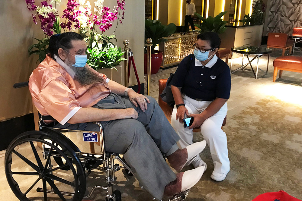 2021年11月初的一个早上,我接到南茜的求助电话,告知薛林纳下体出血,无法排尿,疼痛难耐,二人不知所措,却不打算求医,因为积蓄所剩无几。电话里南茜的焦虑、无助,让人心生不舍,我马上向新加坡慈济人医会的医生和护理师咨询,医护人员了解病况后告知,情况紧急,必须马上送医,不能拖延。
