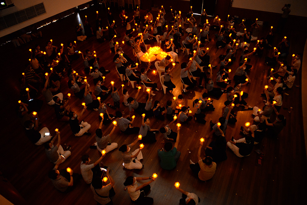 所有人把手中心灯举起,象征点亮内心,迎向美好的人生。(摄/ 蔡佑良)