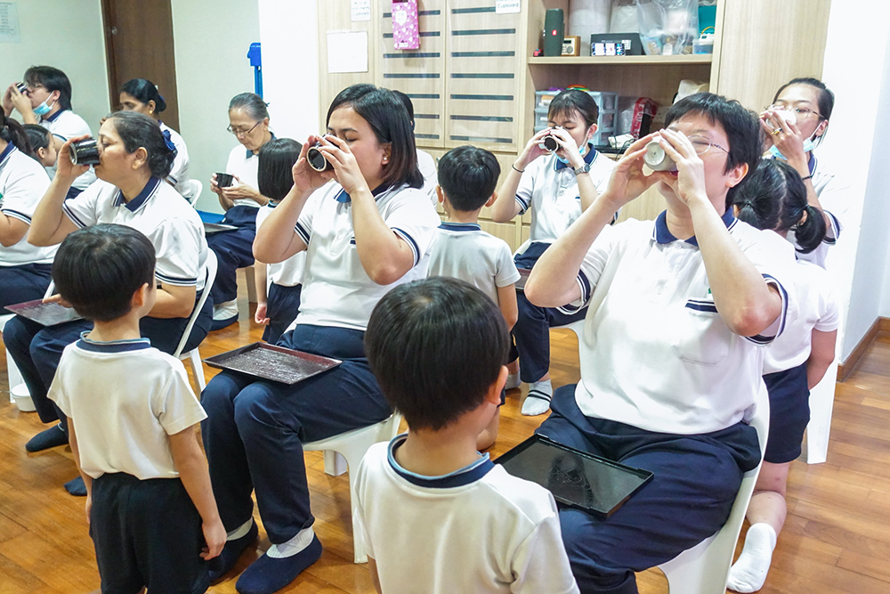 望着幼儿奉上热茶,想想他们曾经都是婴儿部的小婴儿呢,老师郑慧仪感慨时间过得真快,说: “这样的感恩奉茶仪式,是礼物、卡片都无法替代的。”