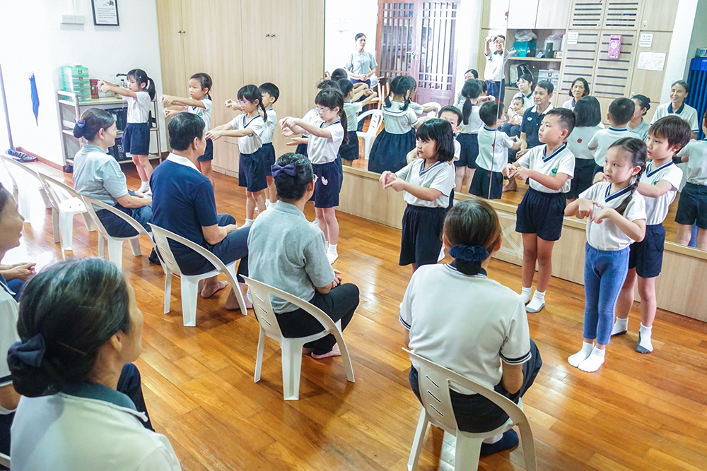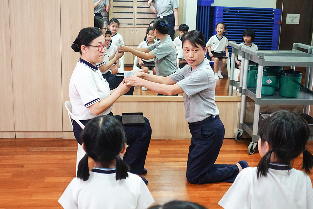 幼教中心管理层细心示范和带动孩子奉茶。(摄/ 陈雪晶)