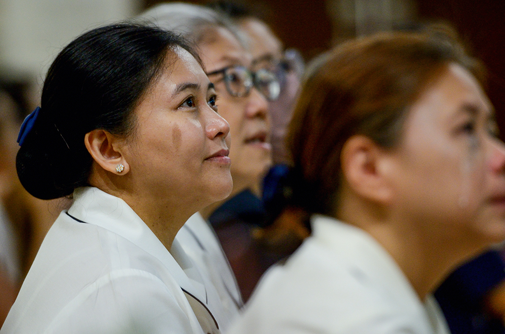 当儿子张力仁(下图左一)顶礼三拜,她由衷地被触动。曾宝璇说:“在新加坡,没有特别的情况也不会对父母顶礼三拜,很感恩学校可以把这样隆重庄严的礼节带到毕业典礼。”