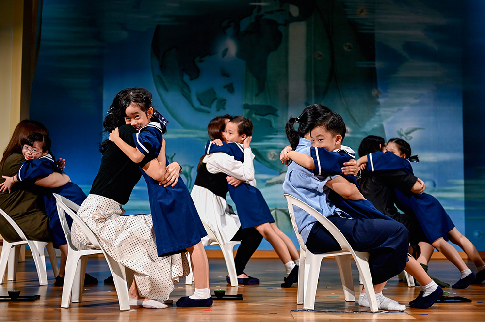 摇身一变,毕业生全体上演一出戏剧,呈现的是爱护环境与地球的故事。