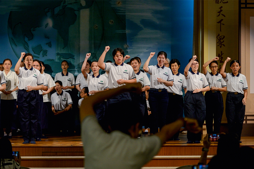 34位毕业生走到台上,集体面向家长顶礼三拜。接着用手语,边唱边演绎《父母恩重难报经》的《报恩》,成长中也铭记父母的养育和栽培之恩。