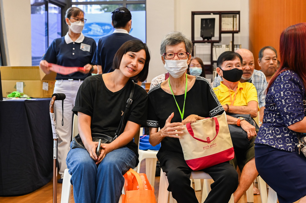 2024年1月21日,慈济基金会(新加坡)于静思堂举办两场新春慈善发放日。早上十时未到,已经有照顾户陆续抵达。有的照顾户搭乘公共交通自行前来,或是在地铁站乘搭慈济列车;一些行动不便的照顾户则由访视主责载送前来静思堂。志工小心翼翼地搀扶长者,场面温馨,好像回家过节一样。