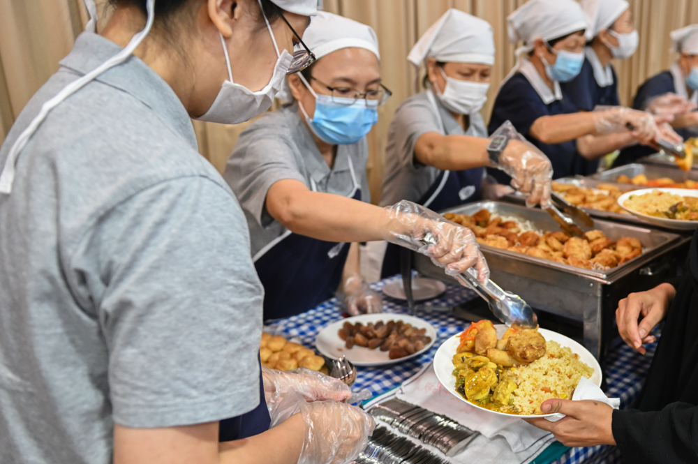 从交通接送、场地布置,到摆放马来风味的蔬食菜肴,志工们一大早开始忙碌,并殷切地等候照顾户的到来。开斋节发放日,少不了志工准备的精彩节目表演,这次有马来歌舞、猜图猜迷、亲手编织马来粽(Ketupat)吊饰等环节。